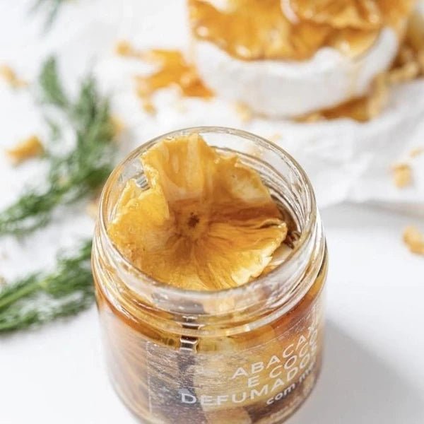 Essa iguaria combina o mel silvestre puro, cuidadosamente colhido, com pedaços de abacaxi defumado e desidratado, resultando em uma experiência sensorial rica, tropical e sofisticada. A doçura natural do mel se equilibra com o frescor do abacaxi e o toque defumado, criando camadas de sabor únicas e memoráveis.